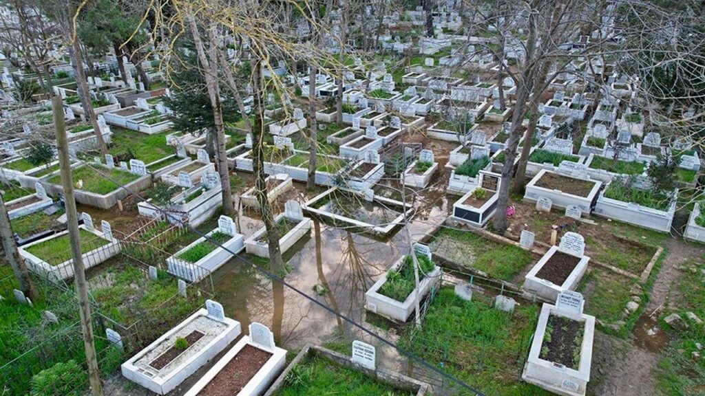 Olay, İstanbul’un Arnavutköy ilçesi Boğazköy Mahallesi’nde meydana geldi. Edinilen bilgilere göre, günlerdir etkili olan yağış sonrası mezarlık alanında su birikintileri